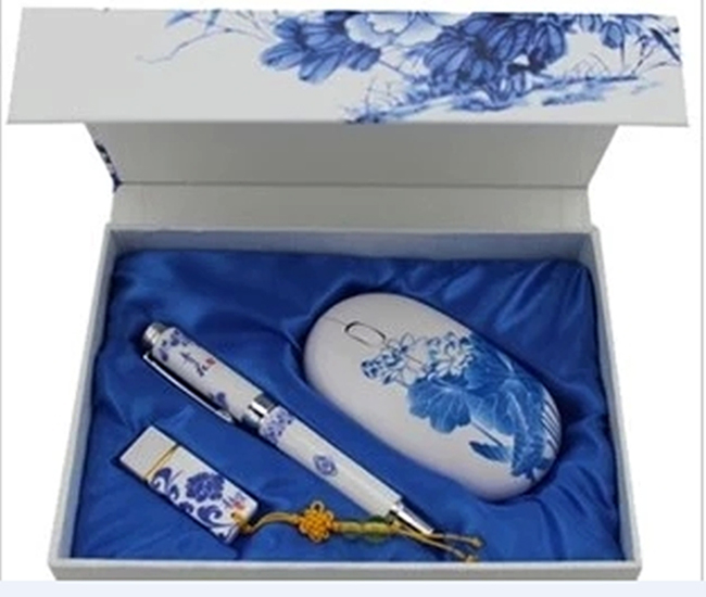編號:TC-011青花瓷U盤+筆+鼠標三件套禮品U盤