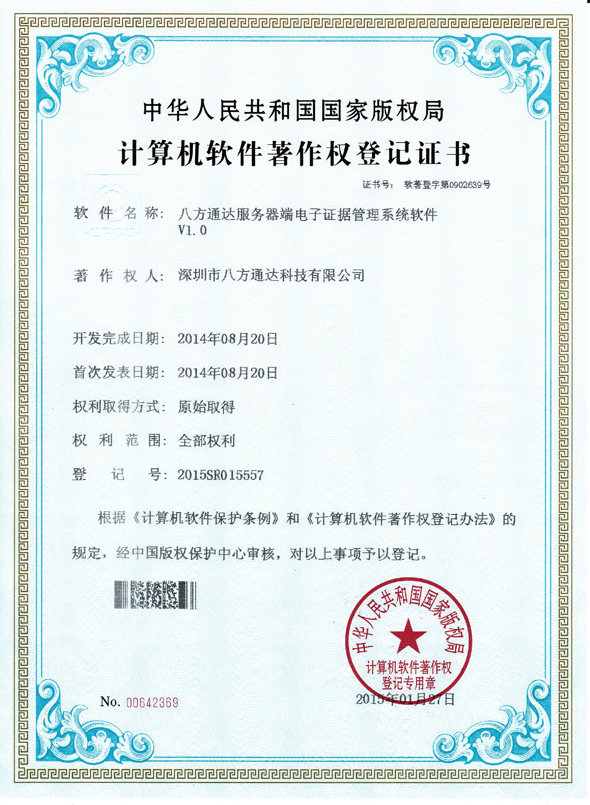 研發(fā)出首款電子單警執(zhí)法視音頻記錄系統(tǒng)管理平臺并申請了相關軟件著作權7項