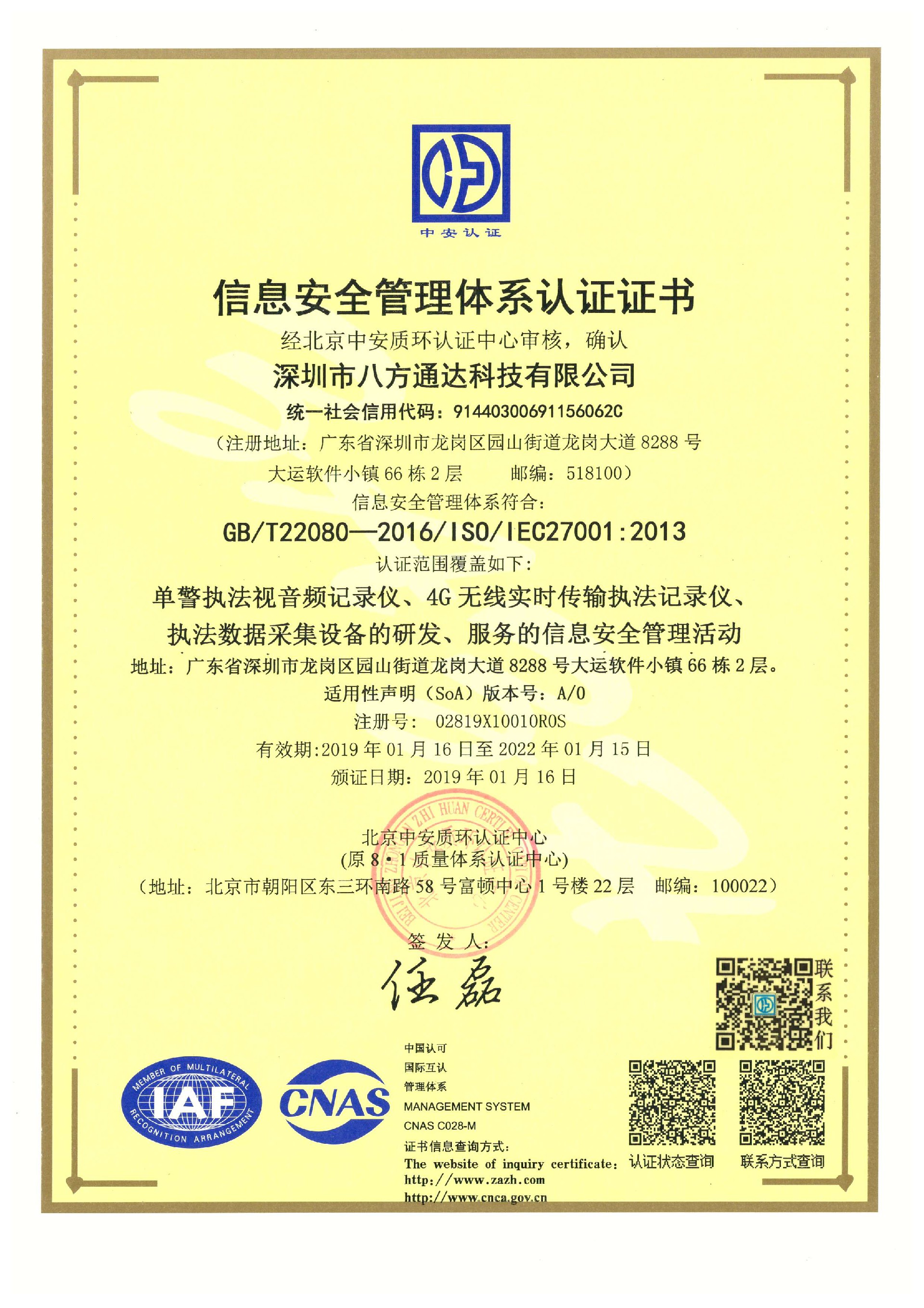 企業(yè)通過ISO270001、20000、安防工程一級資質、商品售后服務體系、知識產權貫標等多項資質審查與中國電子科技集團第五十四研究所在技術研發(fā)上達成深度戰(zhàn)略合作