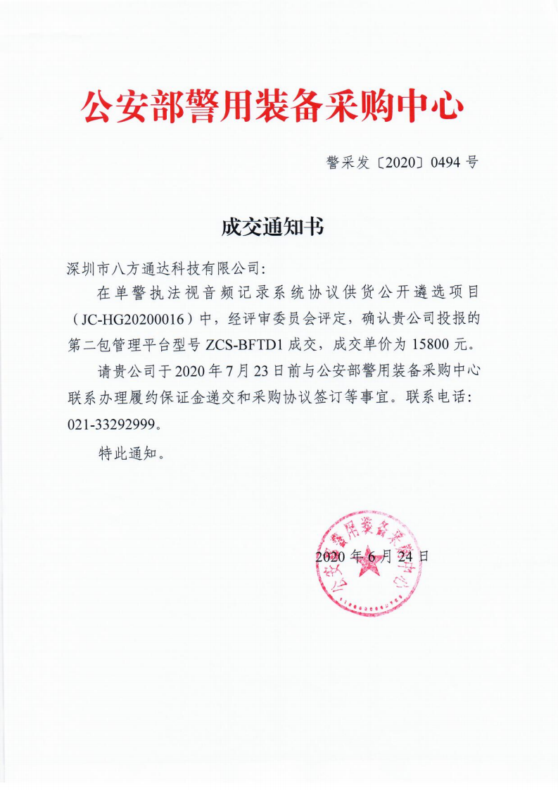 入圍2020年公安部警用裝備采購中心協(xié)議供貨單位