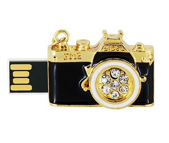 相機珠寶U盤,內置黑膠體芯片,背面采用推拉式設計,不僅保護了USB接口,同時也保證了整個U盤外觀的完整性,另外,這款U盤還具有防水、防塵、抗震等功能。